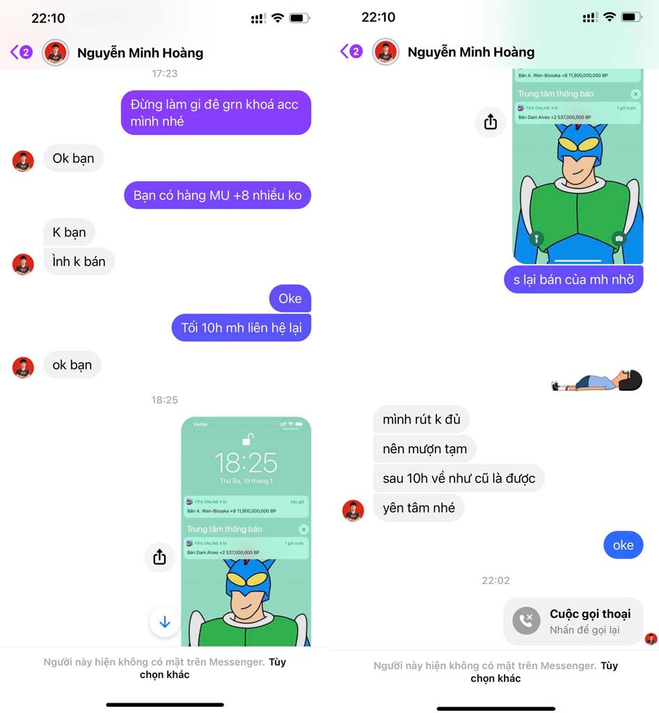Rất nhiều kẻ đã chuộc lợi từ hoạt động TTCN bên ngoài FIFA Online này. Với chiêu trò lập facebook giả mạo hoặc facebook ảo nhưng lượng tương tác như thật. Thậm chí khi những người nhẹ dạ cả tin vào check uy tín. Những đối tượng này có hàng chục có khi hàng trăm tài khoản vào xác nhận úy tín cho chính mình. Tạo niềm tin cho nạn nhân rồi sau đó thực hiện hành vi lừa đảo chiếm đoạt của mình.