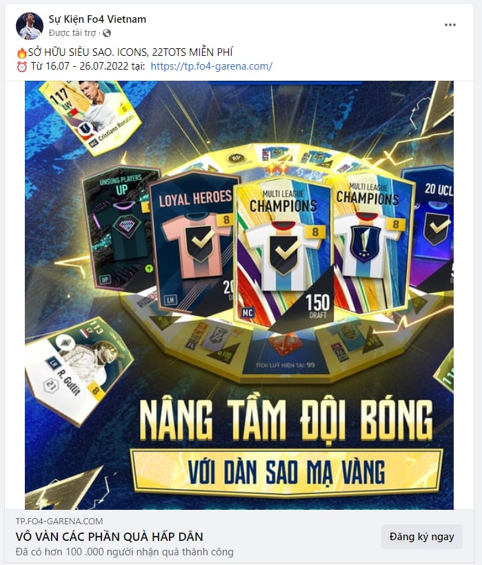 Vào tối ngày hôm qua thì trên FB xuất hiện một quảng cáo với nội dung vô cùng hấp dẫn dành cho những người chơi Fo4, với hàng loạt các thẻ + 8 các mùa giải xịn xò.