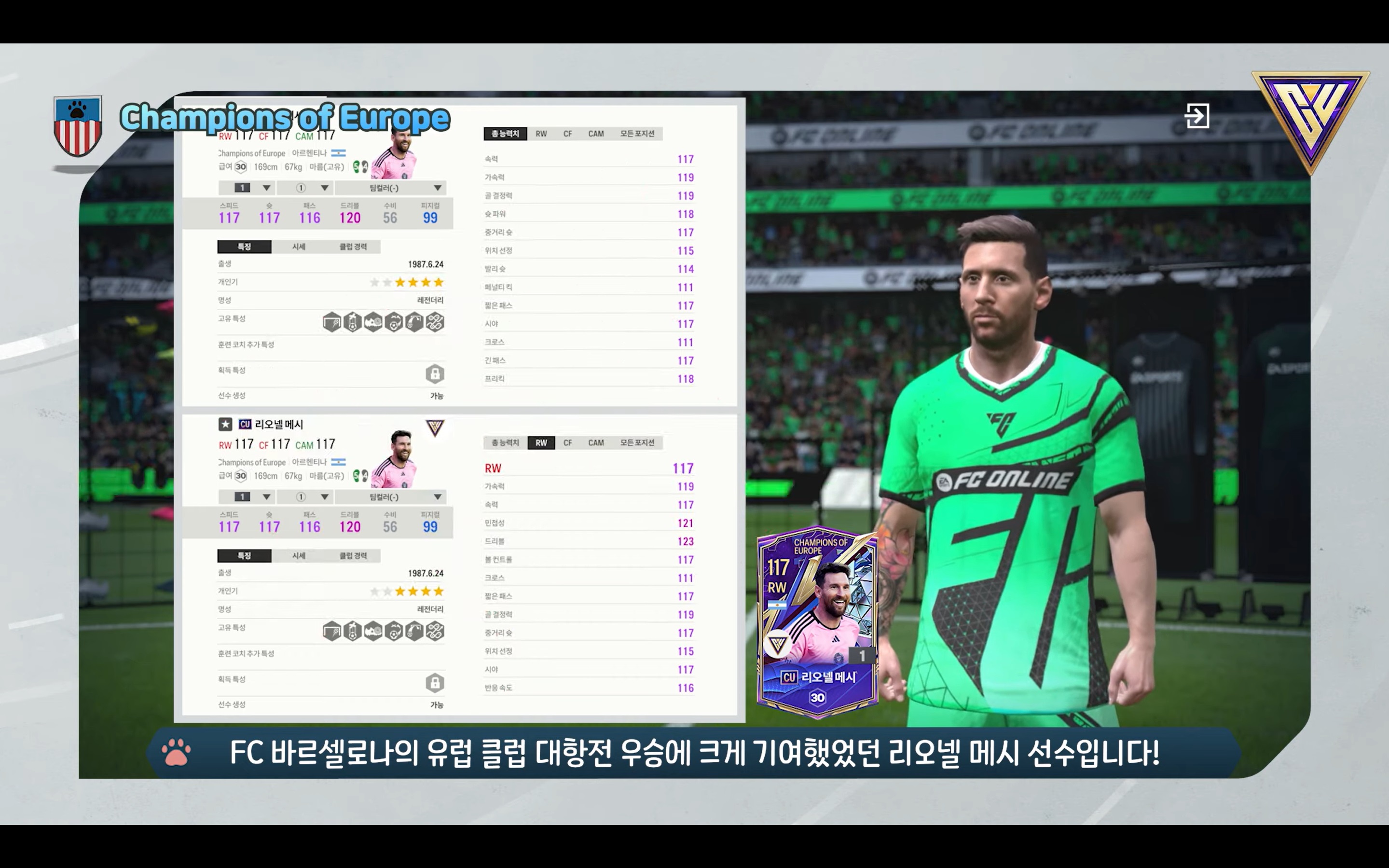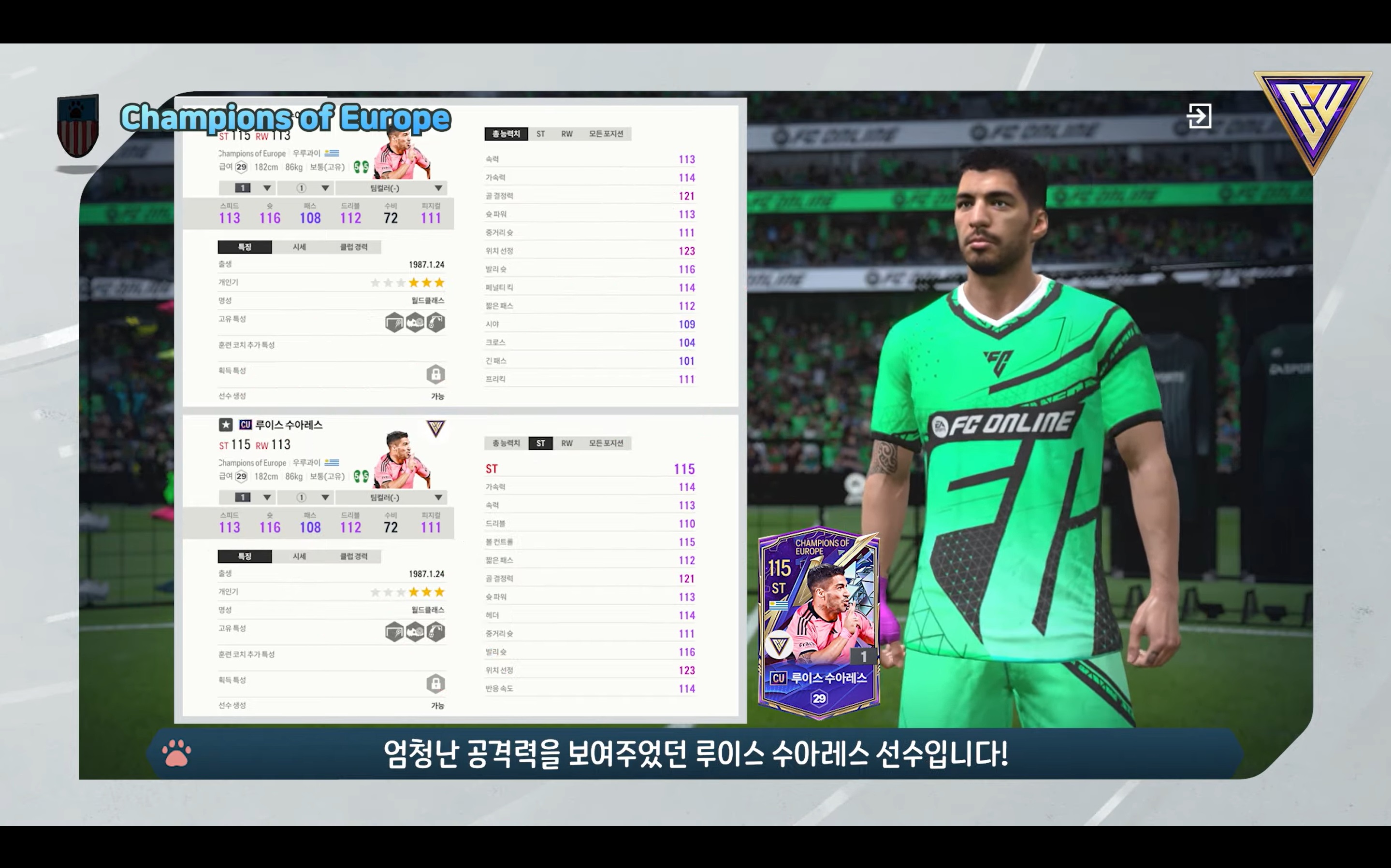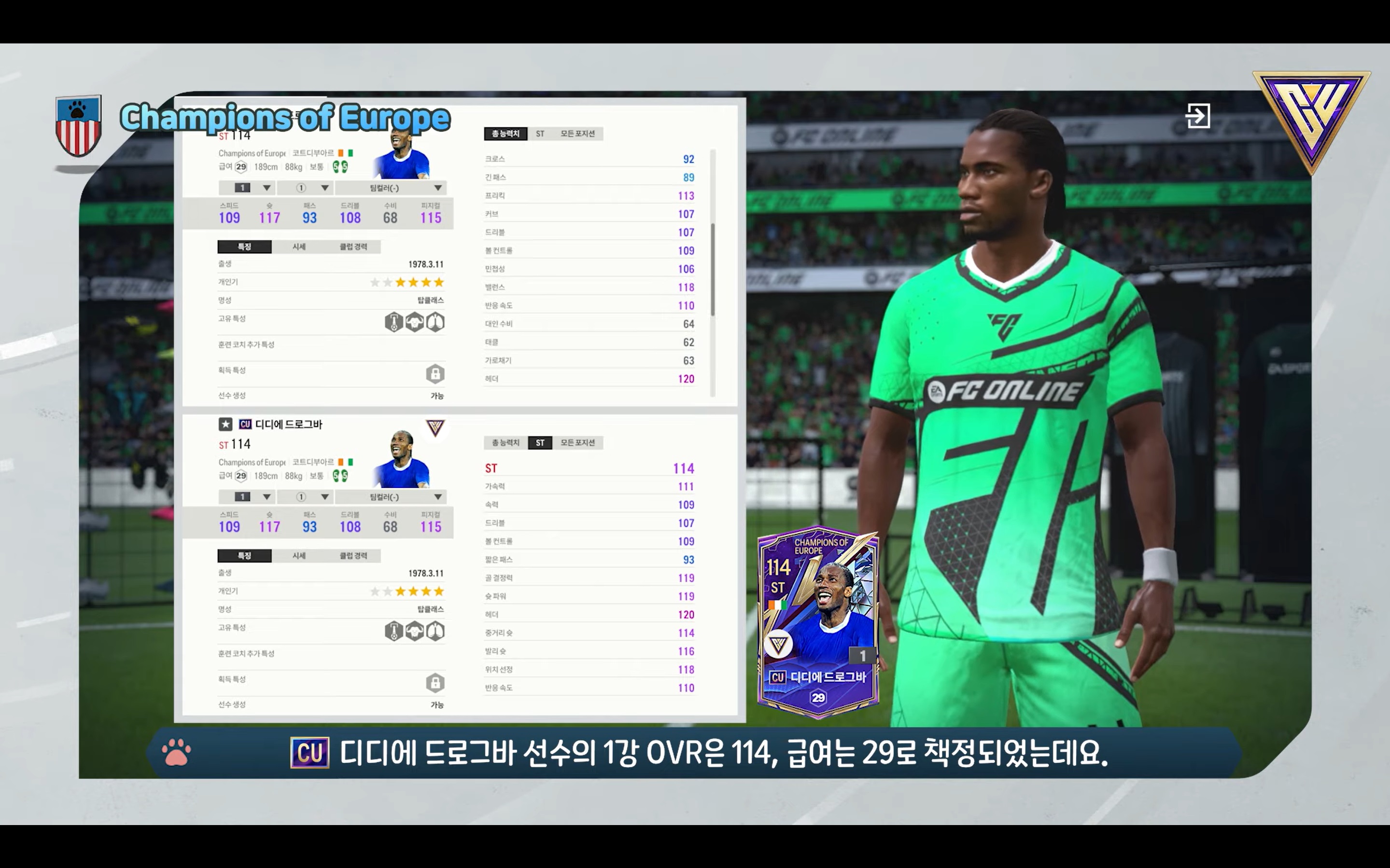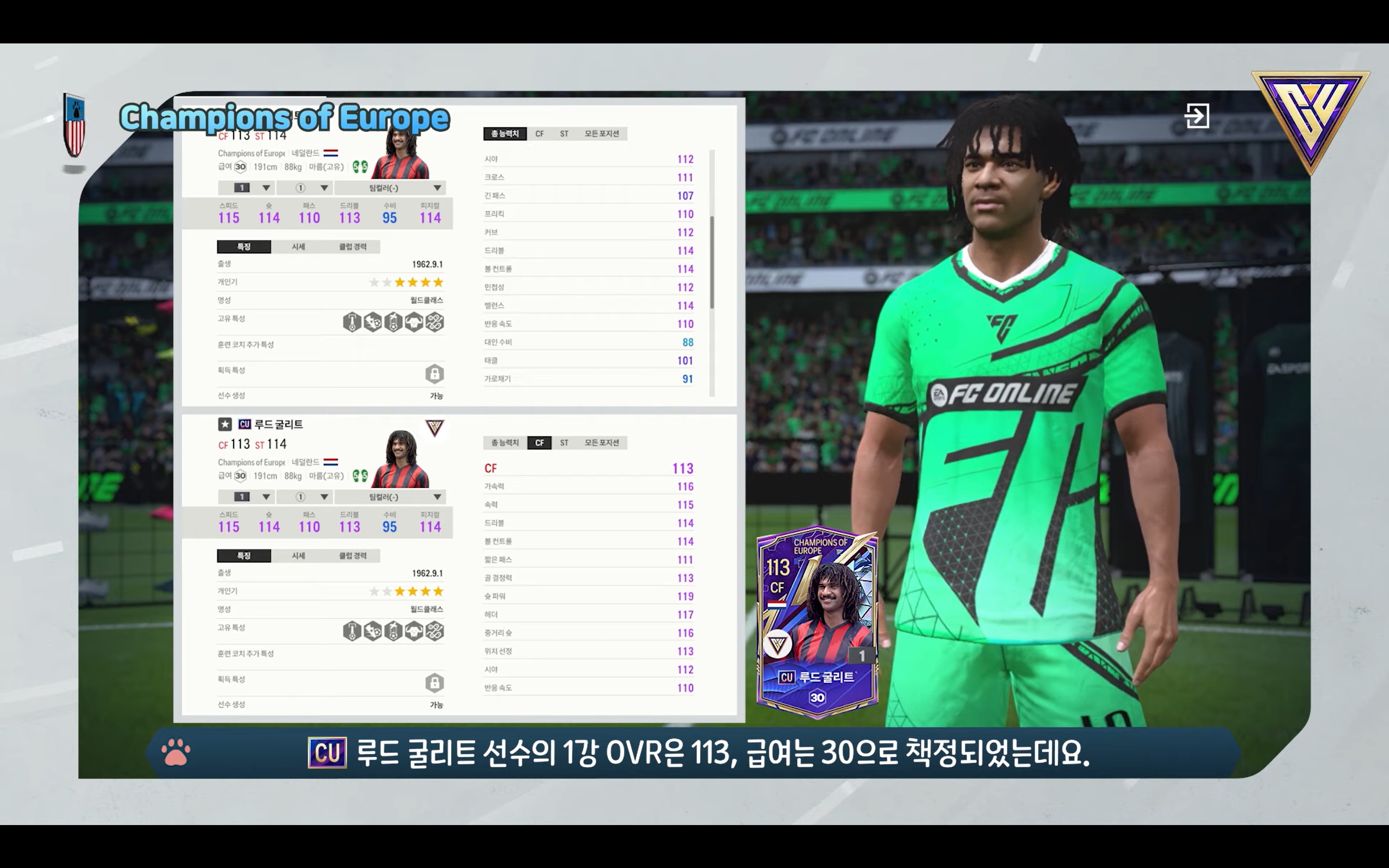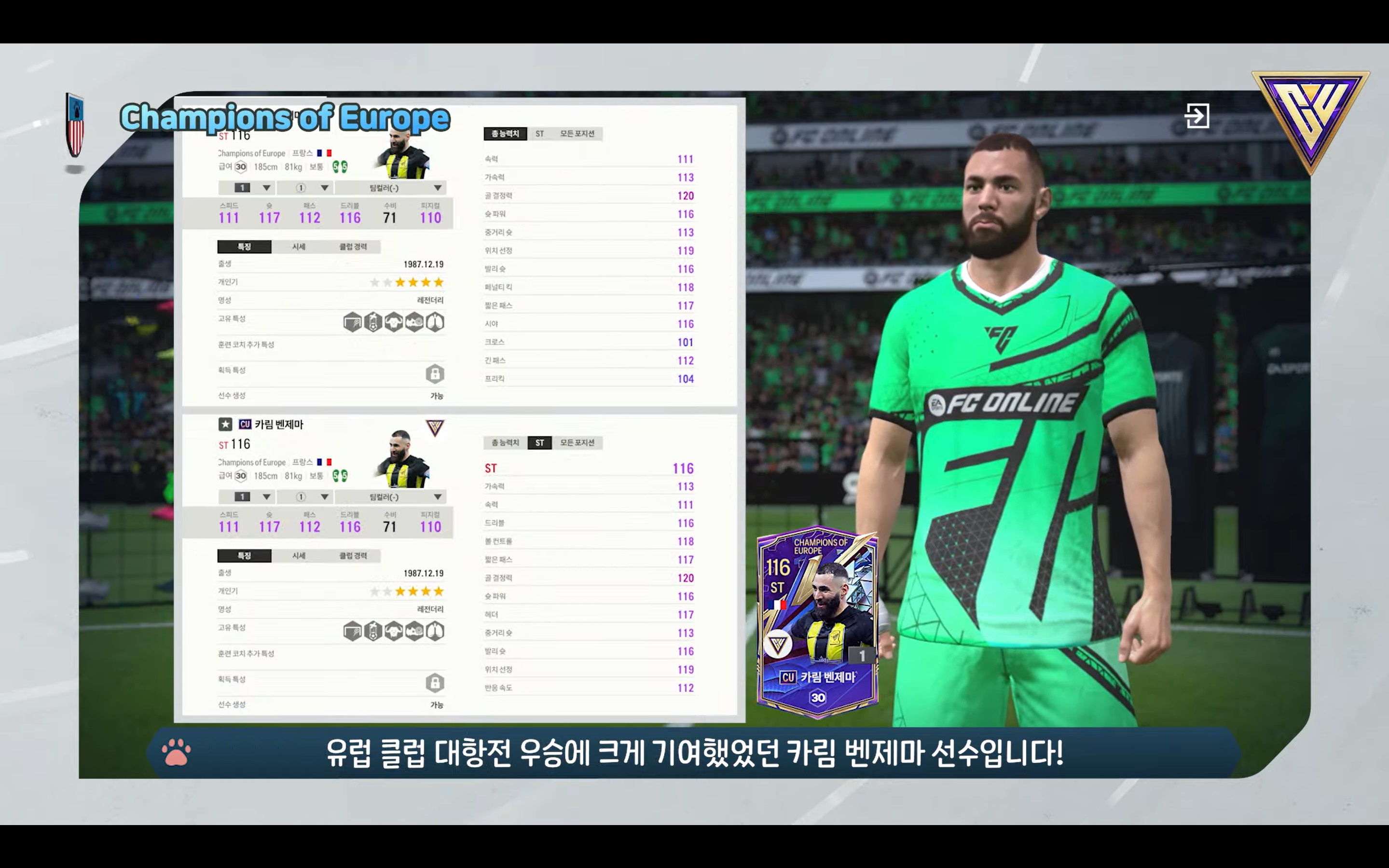 Hãy cùng tham khảo qua về chỉ số của một số cầu thủ mùa thẻ Champions of Europe trong FC Online Hàn được cập nhật trong ngày hôm nay và dự kiến sẽ được cập nhật ở Server Việt Nam trong thời gian tới.