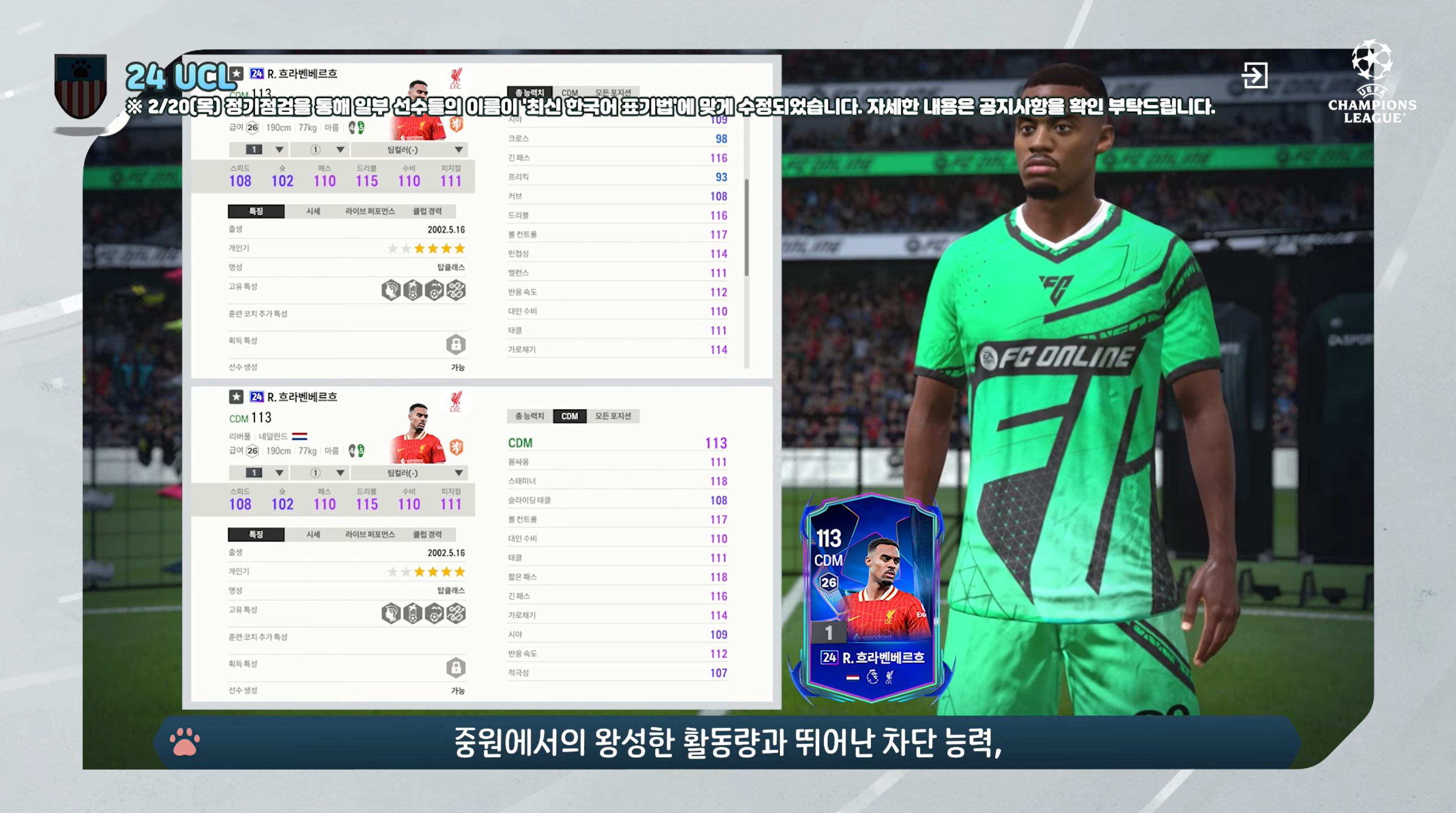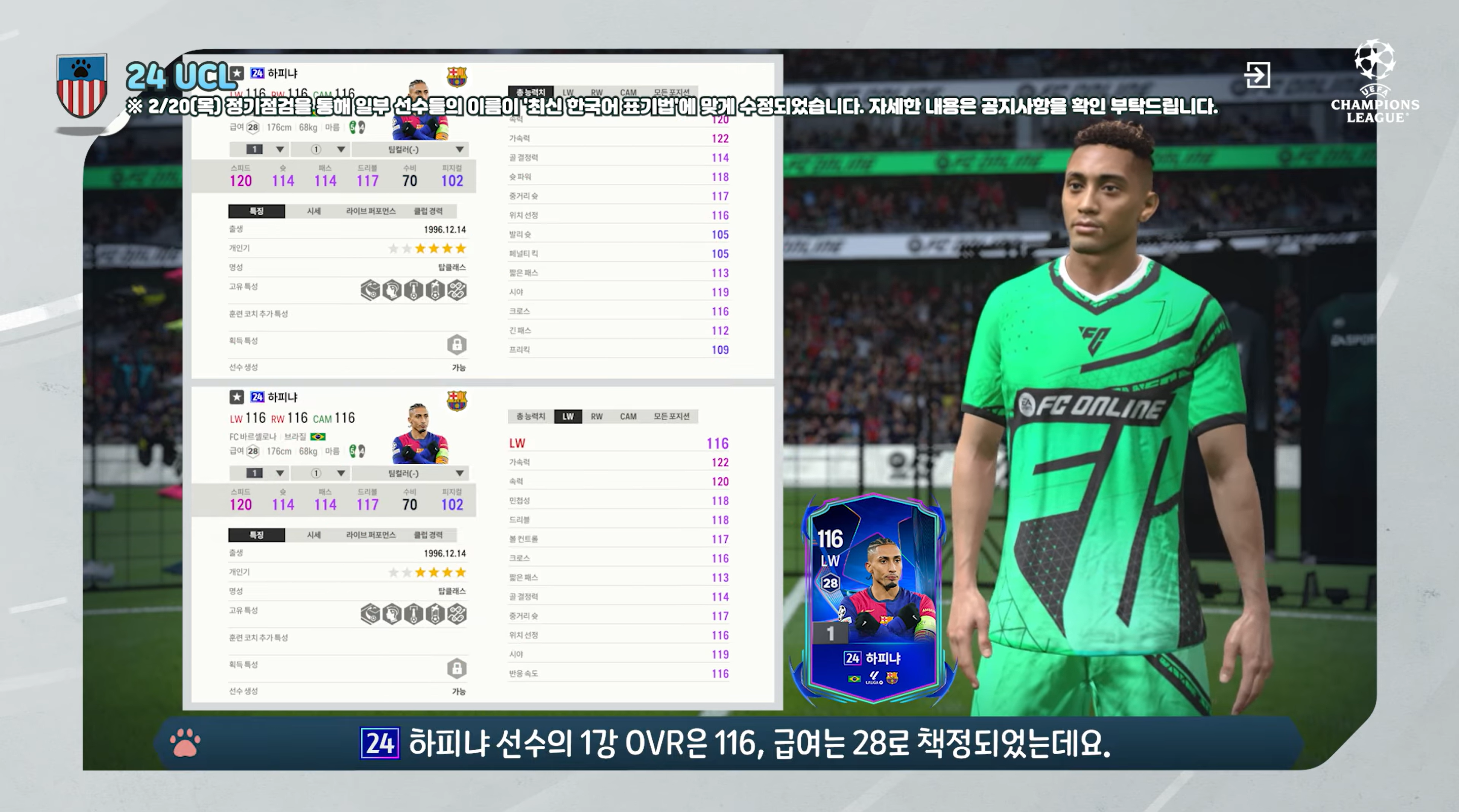 Theo như đã đượ c thông báo từ trước thì hôm nay - 20/2/2025 - FC Online Hàn chính thức ra mắt mùa thẻ mới UEFA Champions League 2024/2025 hay còn viết tắt dưới cái tên 24UCL. Mùa thẻ này mô phỏng lại các cầu thủ của các CLB đã góp mặt trong vòng 1/8 tại C1 thời điểm hiện tại.