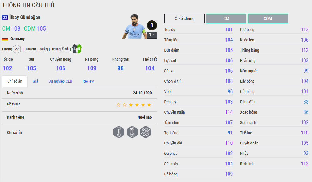 Có thể bạn sẽ ngạc nhiên nếu tôi nói rằng phiên bản 22UCL của Gundogan phòng ngự cực kỳ ổn, với kỹ năng cắt bóng tỏ ra tốt hơn nhiều so với trước update, chưa kể là thể hình của Gundogan cho phép anh tranh chấp thoải mái với các đối thủ trong game mà không sợ bị lép vế