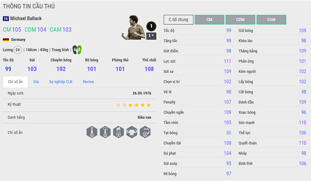 Với khả năng cắt bóng tỏ ra hiệu quả hơn hẳn, Ballack FA gần như sẽ là lựa chọn hàng đầu nếu bạn thích cho anh ấy đá tiền vệ trụ, tất nhiên nếu đủ kinh tế để chơi mùa ICON TM thì đó lại là một câu chuyện khác.