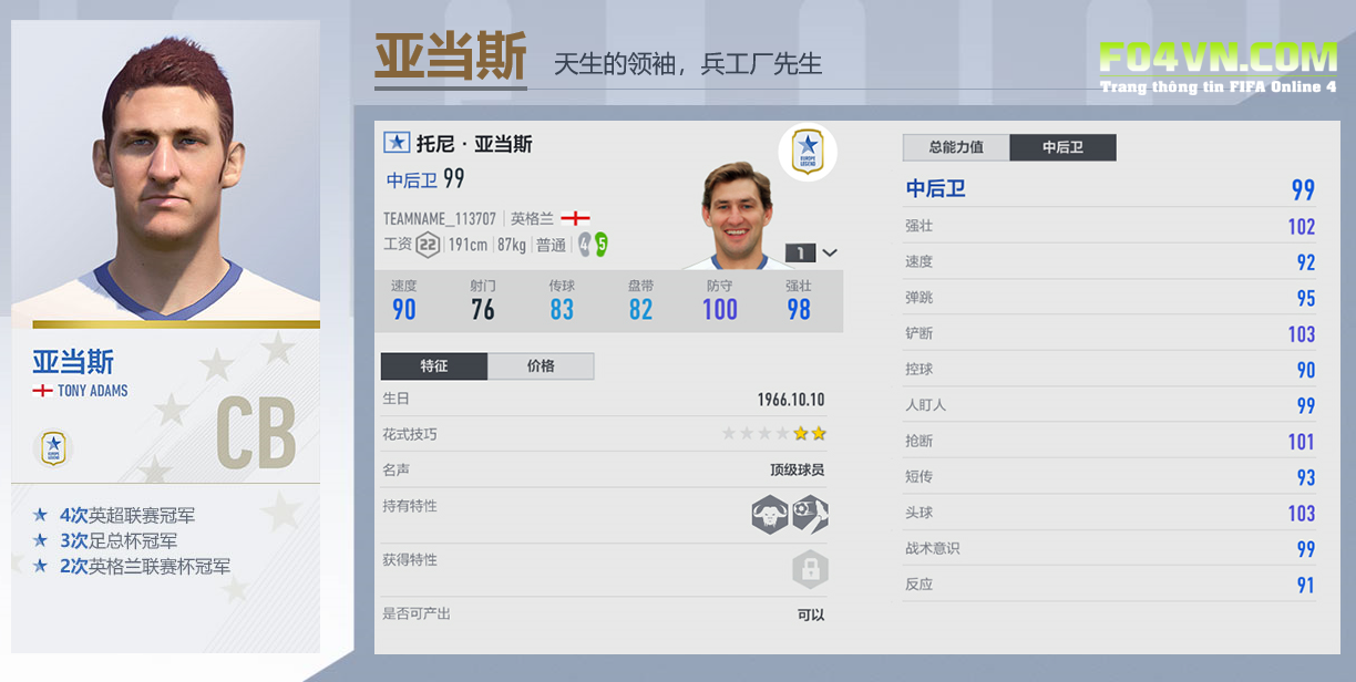 Huyền thoại một thời của Arsenal vốn đã quá gần gũi với nhiều người thì nay với thẻ huyền thoại châu âu anh ta được miêu ta như một con quái vật nơi hàng phòng ngự. Chỉ số tốc độ 90, khá nhanh với một cầu thủ có chiều cao 1m91 à cân nặng lên đến 87 kg, cùng với kỹ năng phòng ngự có chỉ số trung bình lên tới 100 và thể chất 98. Quá khủng khiếp với một sức mạnh phòng ngự sẵn sàng huỷ diệt bất kì kẻ nào dám đối đầu.