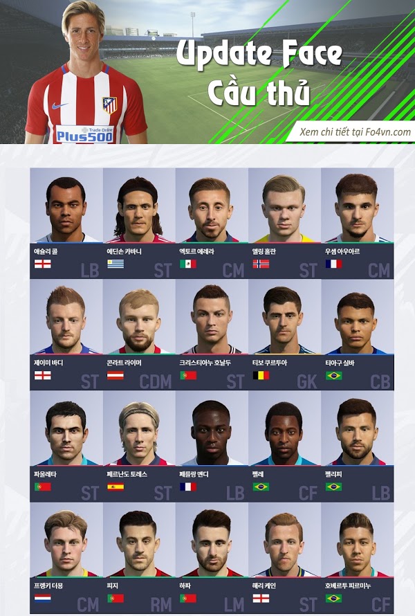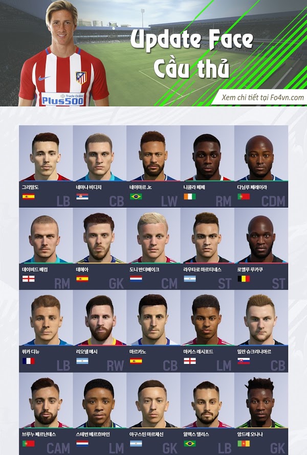 Mới đây trong bản cập nhật ngày 17.12.2020 thì phía Nexon cũng đã update khuôn mặt và tóc cho 40 cầu thủ. Trong đó có những cái tên như F. Torres, F. De Jong, Messi ... Thật ra điều này thường được ít sự quan tâm của các game thủ dành cho tựa game đá bóng này. Trừ một vài trường hợp đặc biệt đẹp trai như Fernando Torres, Beckham... Khi mà những huyền thoại này quay trở lại với tựa game FO4.