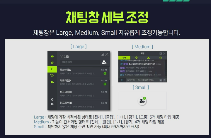 Bạn có thể tủy chỉnh độ to nhỏ của cửa sổ chat một cách thoải mái. Với 3 kích thước lớn, vừa, nhỏ.