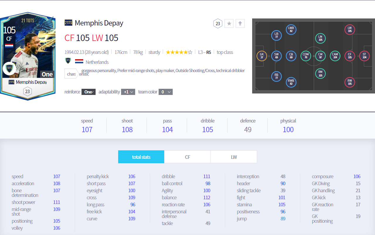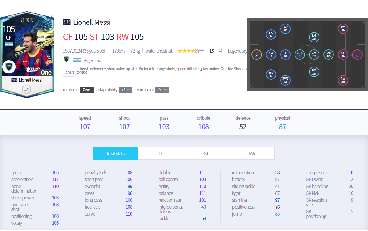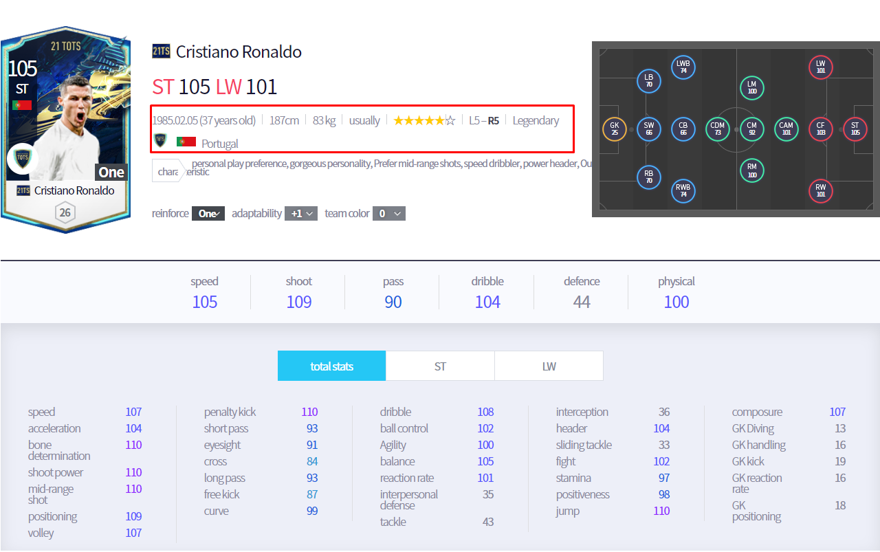 Chỉ số các cầu thủ 21TS. Ronaldo vẫn 2 chân 5/5