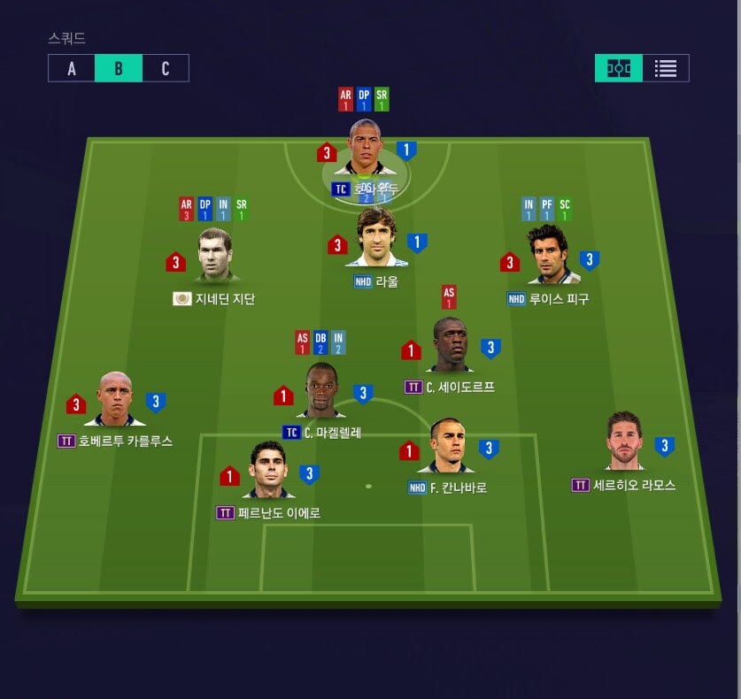Trở ngại lớn nhất trong đội hình này có lẽ là cái tên rất khó có thể nhồi nhét đủ cả ngôi sao vào đội hình mà vẫn đảm bảo mùa giải hay nhất của cầu thủ đó trong game cho đến hiện tại. Vì vậy một vài vị trí chúng ta có thể phải dùng mùa NHD và TT. Tất nhiên các bạn có thể tùy biến theo mức lương cân đối. Vị trí thủ môn của Casillas và Cannavaro là tương đối yếu 1 chút do hạn chế về mặt thể hình của hai cầu thủ này.