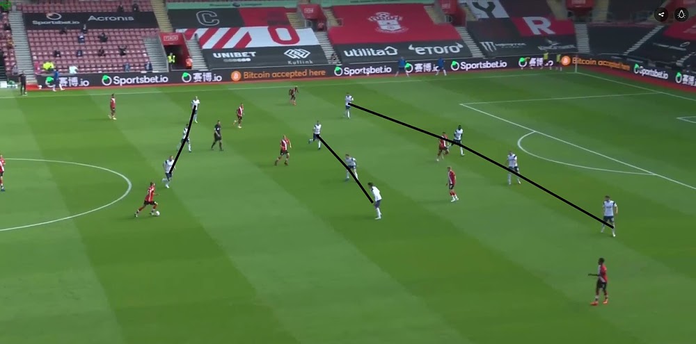 Sau một mùa giải 2019-2020 phập phù, thì hiện tại TOT đang thi đấu cực kỳ ổn định với sự tỏa sáng của cặp đội H. Son và H. Kane. Ngày hôm nay FO4VN xin được gửi đến các bạn chiến thuật mô phỏng lối chơi của TOT trong mùa giải năm nay. Chúng tôi xin phép chọn trận đấu giữa TOT và SOU để mô tả sức mạnh tấn công của đội bóng đến từ London. Đây cũng chính là trận đấu mà TOT đã ghi tới 5 bàn với lưới của SOU.