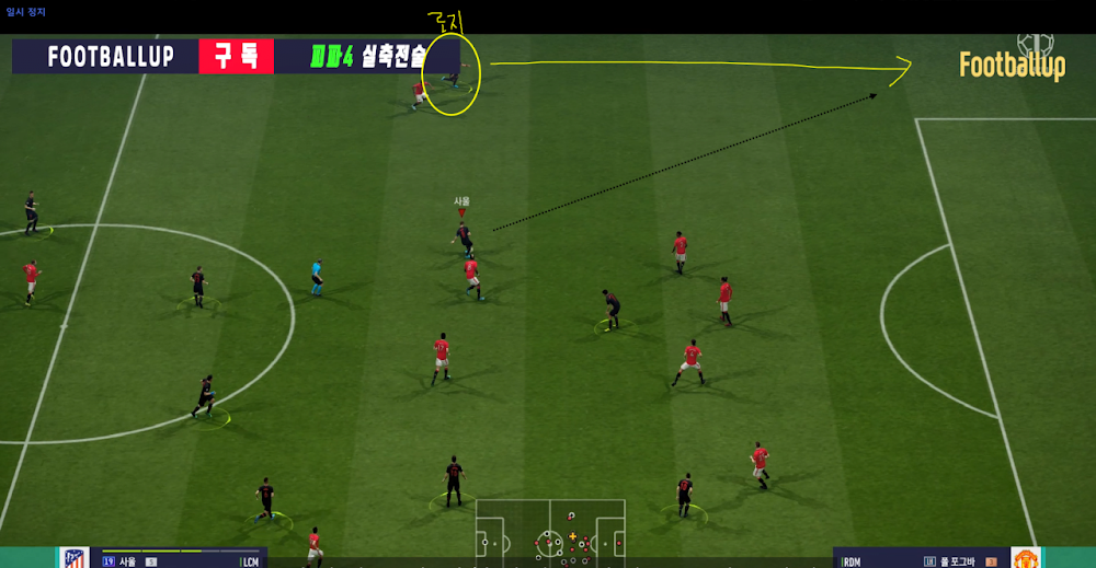 Trong hình trên, các bạn dễ nhận ra đội hình ATM hình thành nên một tam giác ở giữa sân, khi thường xuyên có một tiền vệ trao đổi bóng với 2 tiền đạo phía trên. Đặc biệt,khi Suarez đang xâm nhập từ phía sau, và Felix có một tình huống tấn công giả, hãy Q + S cho tiền vệ phía sau Suarez làm điểm xuất phát, và nếu tiền vệ này thực hiện đường chuyền S cho Felix , bước tiếp theo là một cú chọc khe Z + W hoặc W, hoặc QW và Suarez sẽ tìm thấy bạn.
