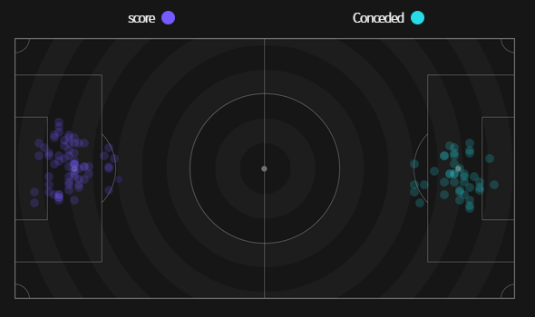 ✔ Cự ly ghi bàn trung bình 14,1m