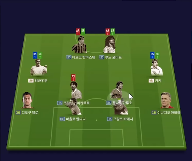 Chiến thuật đơn tương đối đơn giản và khi không hề có một thiết lập nào cho dàn tứ vệ. Hình trên là minh họa cho 4222 của JunHyo khi VĐV này xây dựng team Ac Milan theo sơ đồ 4222.