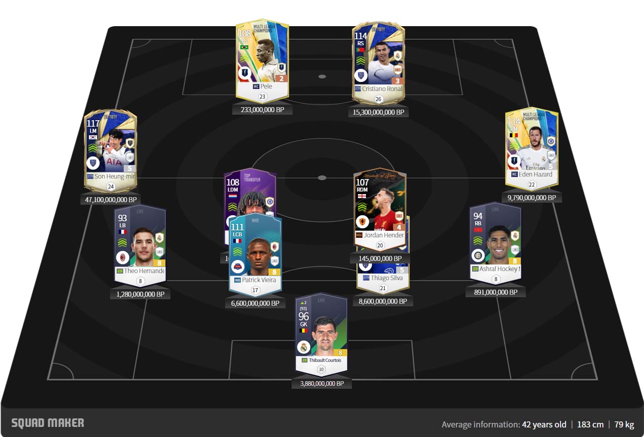 Đội hình của HLV này sử dụng một cái tên đã bị lãng quên rất lâu là vua bóng đá Pele. Ngoài các vị trí có thể dễ dàng sắm +8 ( bên hàn ). Thì các mùa giải 21TY và MC đều ở mức thẻ mà người chơi dễ dàng sở hữu