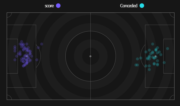 ✔ Cự ly ghi bàn trung bình 13,6m