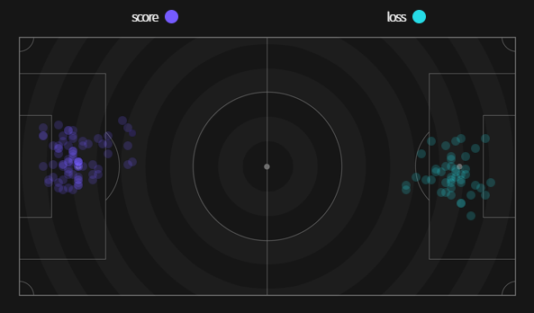 ✔ Cự ly ghi bàn trung bình 14m