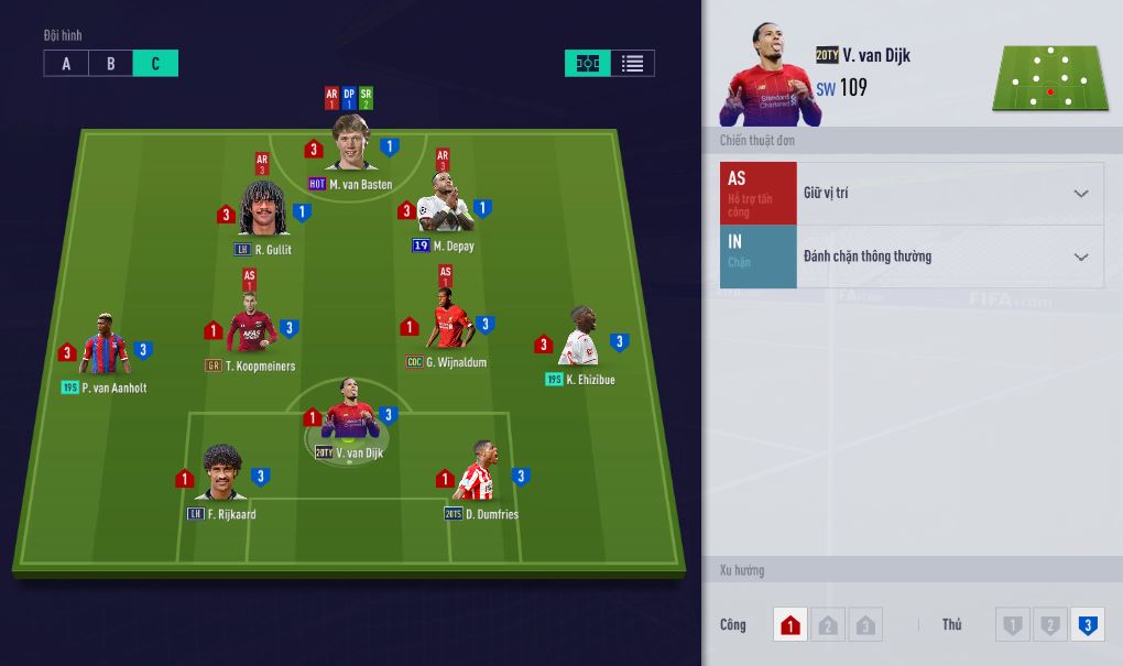 Các tiền vệ trung tâm làm nhiệm vụ bao quát cả khu vực trung tuyến, ưu tiên hàng đầu là hãy chọn những cầu thủ có thể lực, xu hướng 3/3 và càn lướt tốt là lựa chọn ưu tiên. tất nhiên sẽ là những cái tên như Gullit, Vidal,...