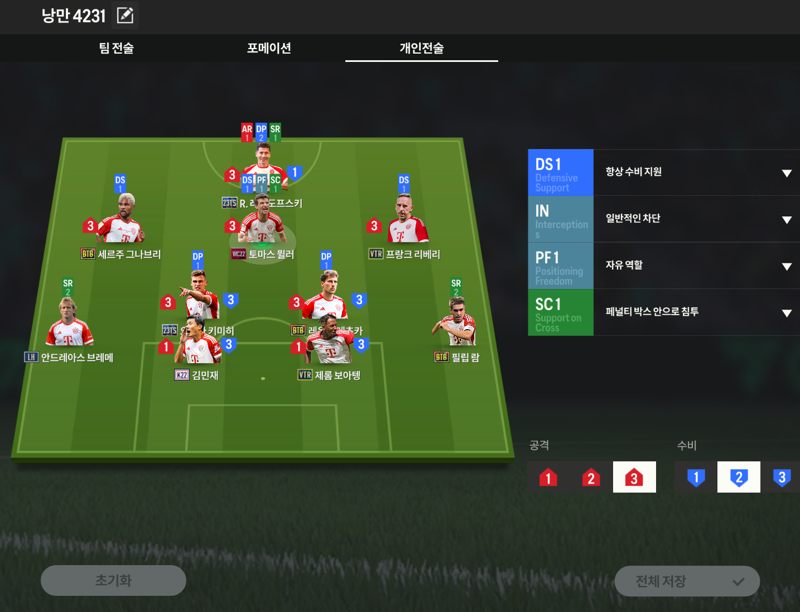 Chiến thuật cá nhân được cài đặt theo từng vị trí như hình dưới nhằm tối ưu theo chiến thuật để người chơi hậu quả.