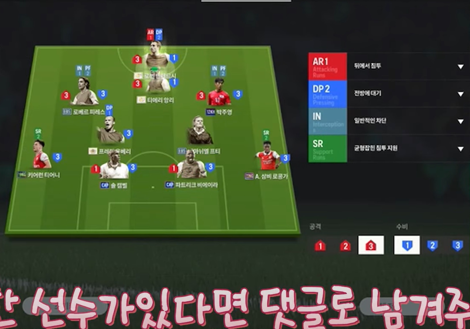 Lối chơi cá nhân được sắp xếp như hình biên dưới. Việc bó 2 cánh vào RAM, LAM sẽ dẫn đến việc thiếu vị trí công cánh, vì vậy 2 hậu vệ biên sẽ có thiết lập luôn chồng cánh để hỗ trợ tấn công tạo nên một thế trận tấn công chủ động, đa dạng và dễ dàng dồn ép hàng phòng ngự đối thủ lùi sâu.