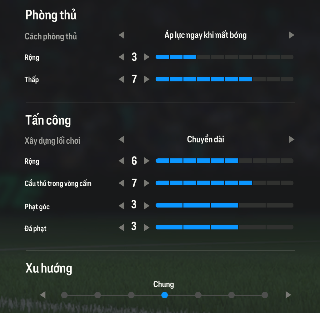 Trong khi đó lối chơi tấn công chuyền dài là đủ để dâng hàng công lên nhanh chóng trong các tình huống phản công khi cướp được bóng từ đối phương. Tận dụng kỹ năng chuyền chọc khe tốt của các tiền vệ để mở toang cơ hội ghi bàn cho hàng công.