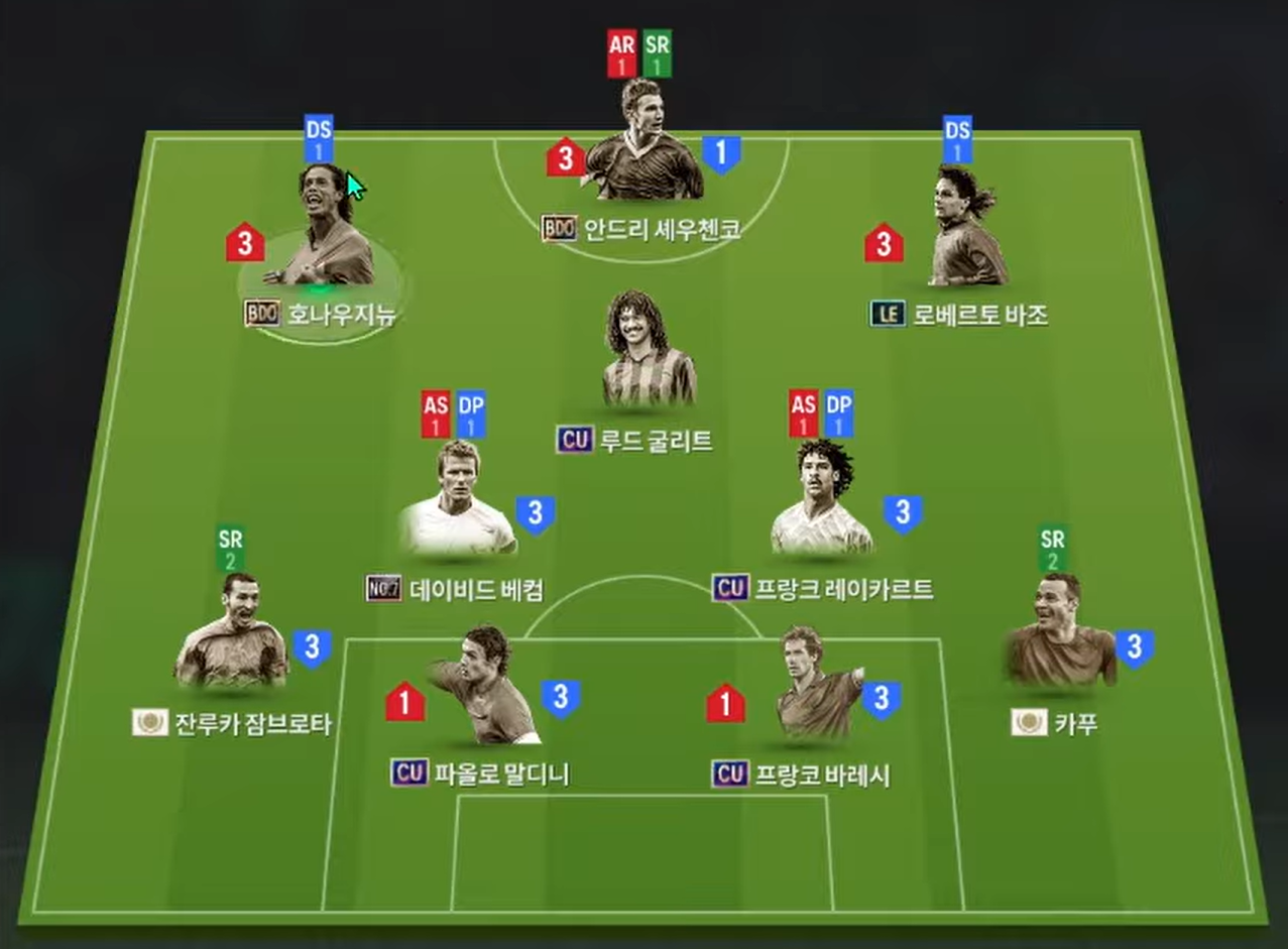 Tiền vệ công Gullit là cái tên khó có thể thay thế trong đội hình tấn công khi sở hữu sự toàn diện từ khả năng chuyền bóng, phối hợp ban bật, dứt điểm cho đến những tình huống triển khai bóng và sút xa tuyến 2 lẫn tranh chấp đều ổn. Tiền vệ phòng ngự với Beckham và Rijkaard đảm bảo được chất thép trong khả năng hỗ trợ phòng ngự nhưng cũng đem lại hiệu quả ở các tình huống triển khai tấn công, chuyền bóng cho tới sút xa tuyến 2.