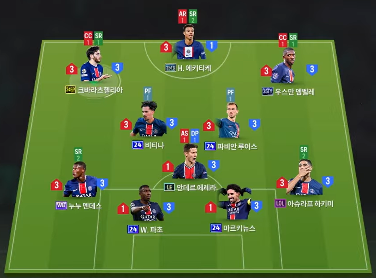Bộ tứ vệ với cặp hậu vệ biên Mendes và Hakimi được xem là quốc dân khi cực kì toàn diện cả về khả năng tấn công lẫn phòng ngự, từ đua tốc, tranh chấp tắc bóng phòng ngự cho tới dâng cao hỗ trợ tạt bóng phối hợp tấn công đều tốt. Cặp trung vệ Pacho và Marquinhos lại sở hữu AI phòng ngự khôn, hiệu quả trong các tình huống không chiến. Thủ môn Donnarumma là cái tên được tin dùng trong khung gỗ.