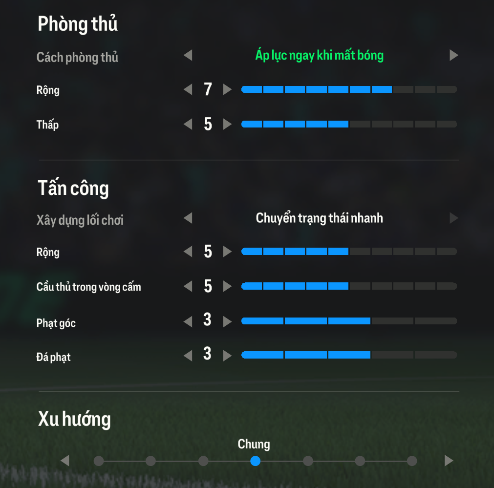 Trong khi đó, lối chơi chuyển trạng thái nhanh sẽ là cần thiết để giúp xoay chuyển tình huống bóng và các cầu thủ sẽ có xu hướng dâng lên cùng lúc để thực hiện phản công tạo ra nhiều phương án phối hợp khác nhau để ghi bàn.