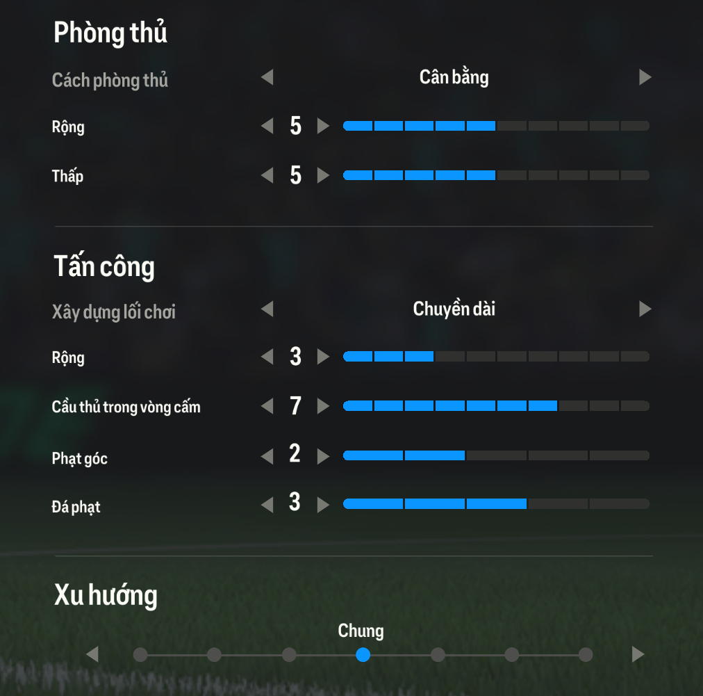 Chiến thuật đơn được lựa chọn như hình để tối ưu lối chơi của các cầu thủ trong đội.