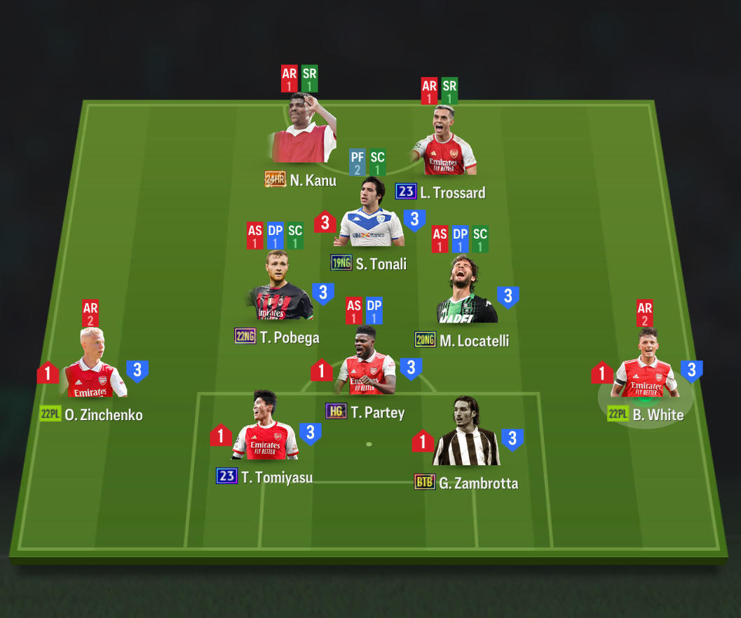 Sơ đồ được lựa chọn là sơ đồ 41212 hẹp với cặp đôi tiền đạo được lựa chọn là Rooney và Gullit chơi cao nhất trên hàng công. Tiền vệ công được lựa chọn là J.Cole, cầu thủ vừa có tốc độ lẫn kỹ năng chuyền bóng và sút xa tốt.
