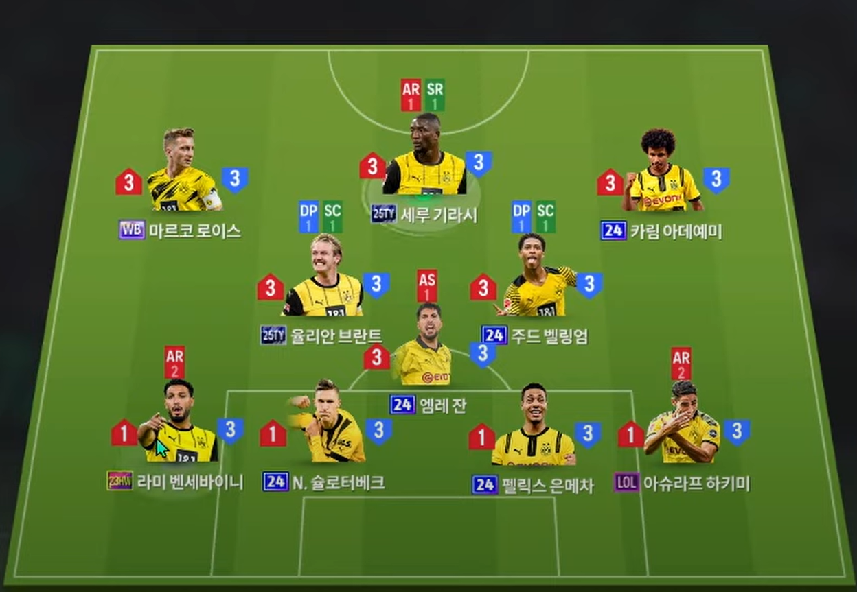 Hôm nay hãy cùng tìm hiểu 1 team color top rank Hàn với sơ đồ 4123 top rank siêu sao Hàn với team color Dortmund, đây được xem là một trong những team color Dortmund mạnh nhất tại server Hàn.