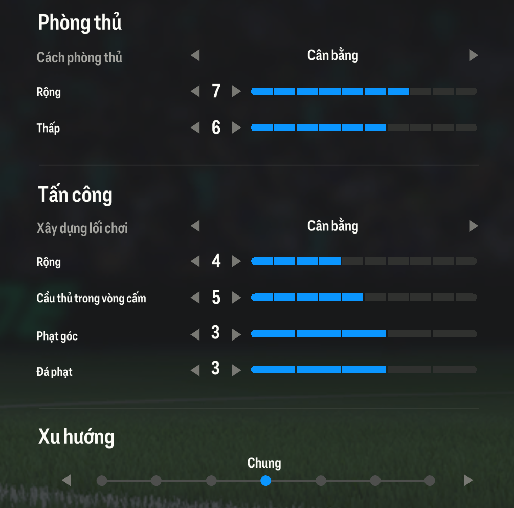 Lối chơi tấn công và phòng ngự đều được thiết lập cân bằng để tạo dựng một thế trận an toàn, chủ động bắt người và đổi trỏ chuột để phòng ngự theo từng khu vực. Bởi lẽ đội hình đương đại không có nhiều những cầu thủ quốc dân nên sẽ không thể đối đầu trực tiếp với những đội hình có chất lượng cầu thủ tốt.
