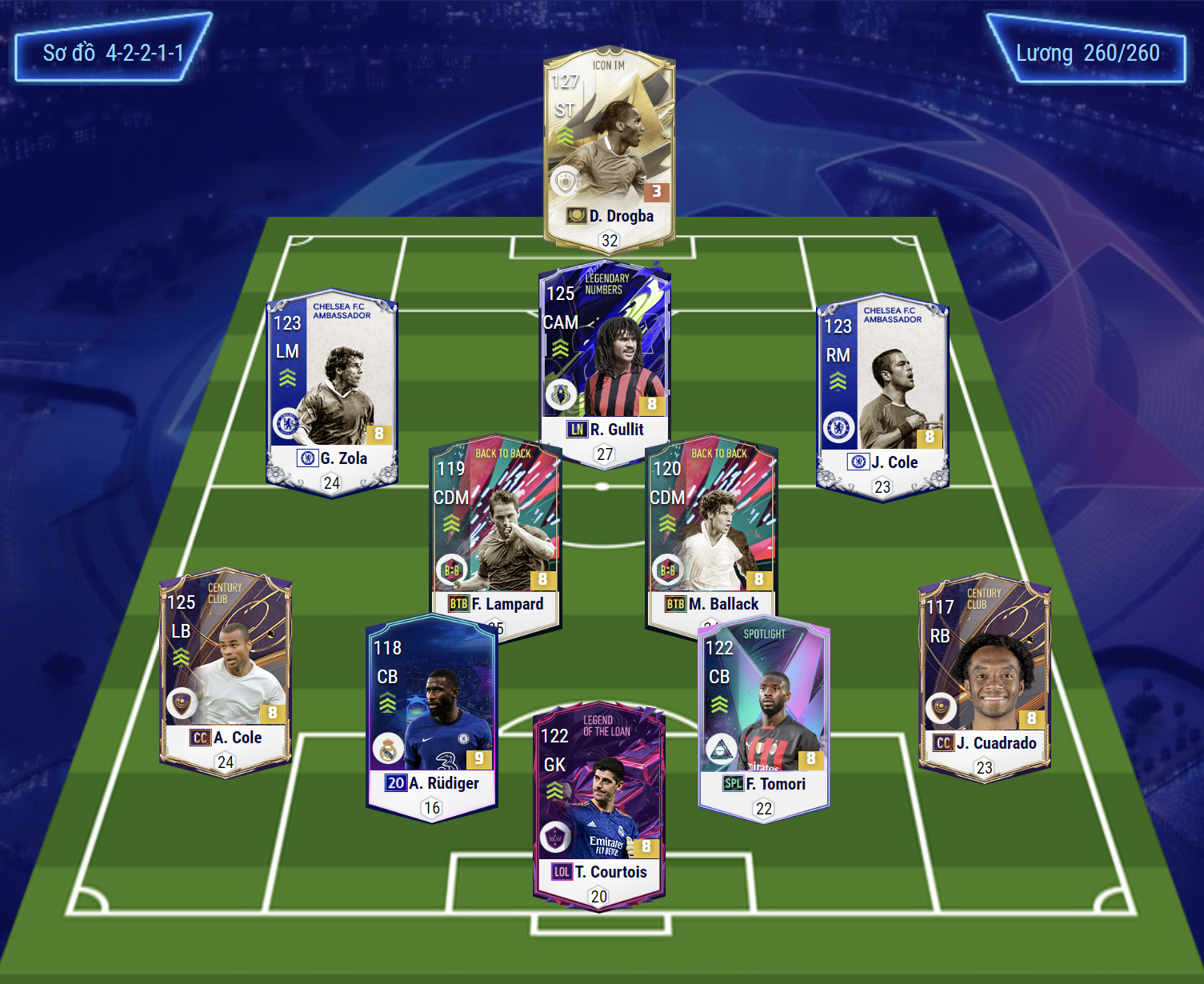 Sơ đồ 42211 hiện đang là sơ đồ được tin dùng cho meta mới vốn đang rất khó để làm quen. Trong đó, Chelsea được đánh giá là một trong những team color hiệu quả ở sơ đồ này.