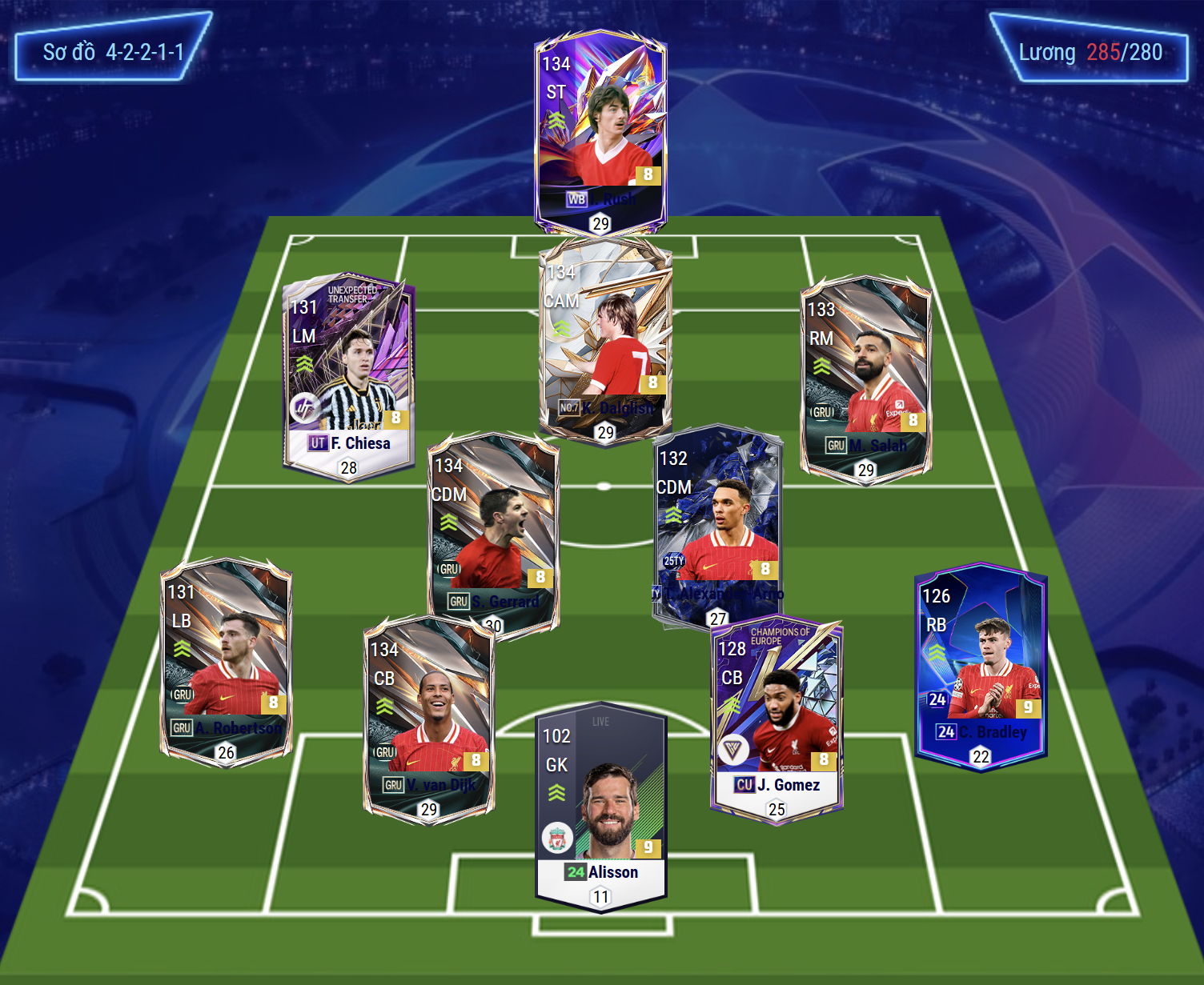Những ngôi sao như Mohamed Salah, Virgil van Dijk, Alisson Becker hay huyền thoại Steven Gerrard đều góp mặt qua nhiều mùa thẻ, tạo nên một tập thể cân bằng từ hàng công bùng nổ đến hàng thủ chắc chắn.