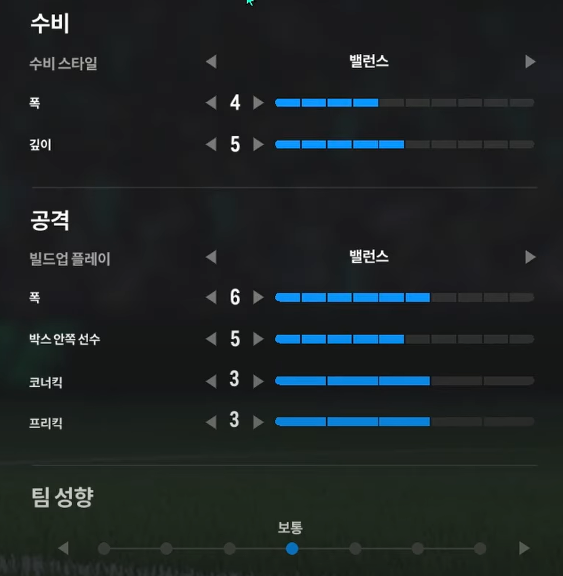 Trong khi, thiết lập tấn công "cân bằng" sẽ phù hợp cho lối chơi kiểm soát bóng, triển khai thế trận chậm, chắc ở tuyến giữa và ban bật với các vệ tinh trên hàng công để mở ra khoảng trống và ghi bàn. Ở lối chơi tấn công này, xu hướng triển khai sẽ là xu hướng chậm, chắc bóng và tìm kiếm cơ hội thay vì tấn công tổng lực và tốc độ cao.