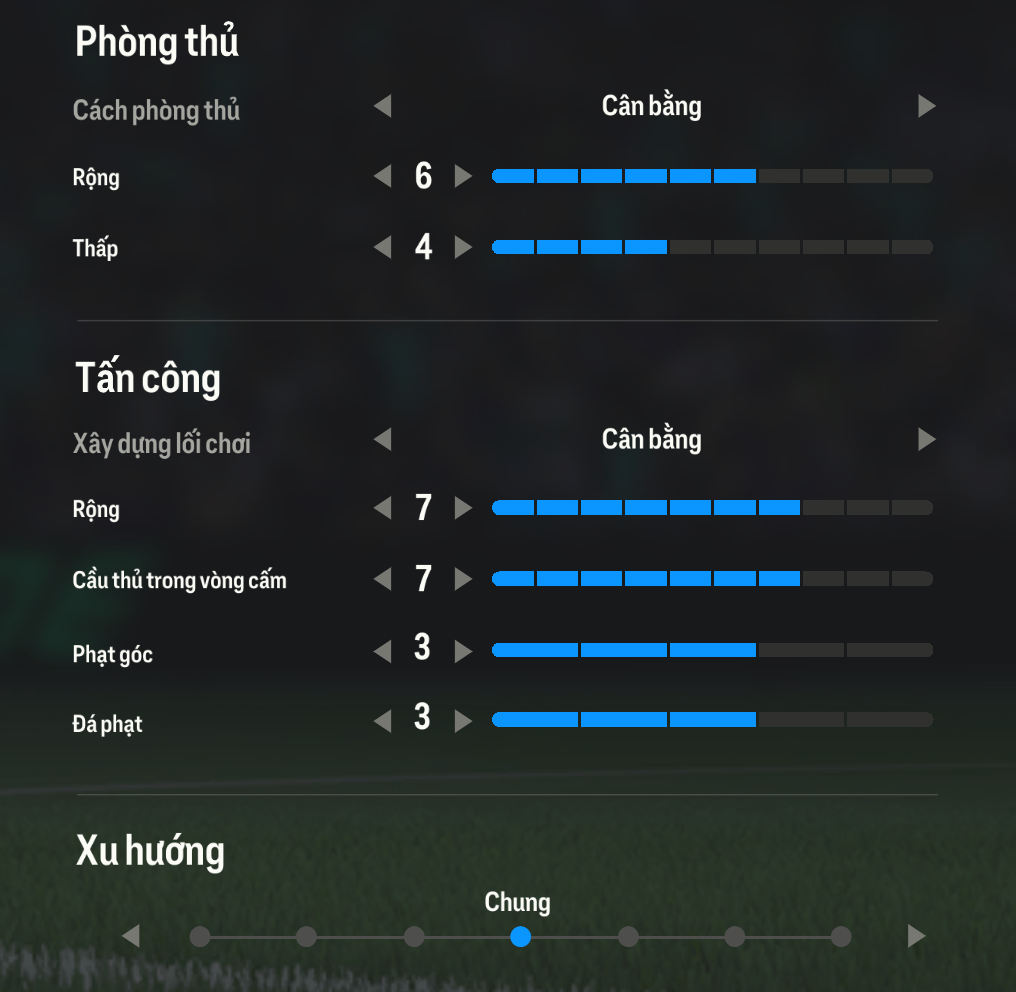 Trong khi đó, tấn công cân bằng sẽ giúp các HLV có thể triển khai bóng một cách từ từ, tạo nên nhiều không gian chơi bóng và đem lại hiệu quả tốt ở meta hiện tại. Việc triển khai bóng cân bằng sẽ khiến các vị trí tấn công có thời gian di chuyển trong khi hàng tiền vệ vẫn bắt kịp nhịp độ để có những đường chuyền kết nối hiệu quả.