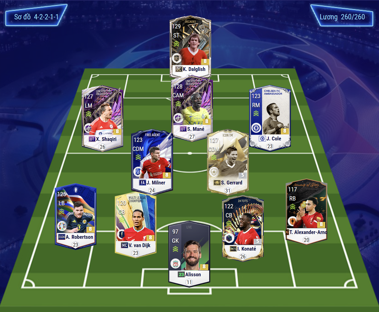 Trong FC Online, Liverpool được đánh giá là một team color khá mạnh, có nhiều cầu thủ chất lượng và đem đến một đội hình đồng đều và đa dạng ở các tuyến. Đây là lí do các cầu thủ Liverpool dần cho thấy hiệu quả ở rank đơn 1vs1.