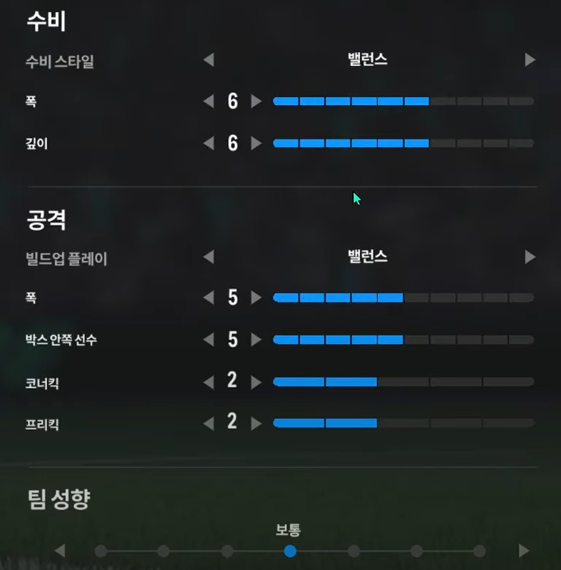 Trong khi, thiết lập tấn công "cân bằng" sẽ phù hợp cho lối chơi kiểm soát bóng, triển khai thế trận chậm, chắc ở tuyến giữa và ban bật với các vệ tinh trên hàng công để mở ra khoảng trống và ghi bàn. Ở lối chơi tấn công này, xu hướng triển khai sẽ là xu hướng chậm, chắc bóng và tìm kiếm cơ hội thay vì tấn công tổng lực và tốc độ cao.