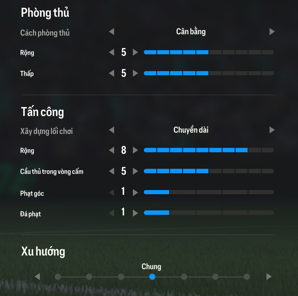 Chiến thuật đơn được thiết lập như hình nhằm tối ưu lối chơi, khả năng triển khai của các cầu thủ.