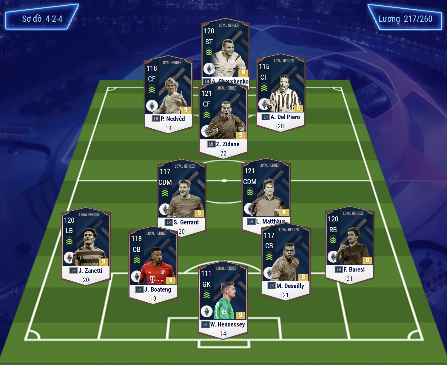 Cặp đôi tiền vệ phòng ngự là Gerrard và Matthaus. Đây được xem là bộ đôi sút xa và chuyền bóng rất tốt thời điểm hiện tại. Cặp hậu vệ biên Zanetti và Baresi cùng với bộ đôi trung vệ Boateng và Desailly tạo nên bức tường thép cho đội hình. Thủ môn Hennessey được tin dùng nơi khung gỗ.