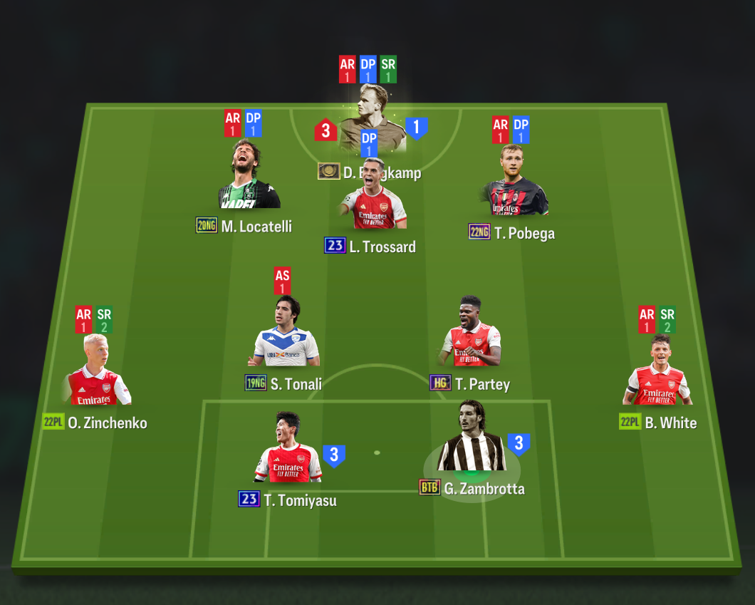 Ở chiến thuật đơn, thiết lập như hình nhằm tối ưu lối chơi và khả năng di chuyển của các cầu thủ.