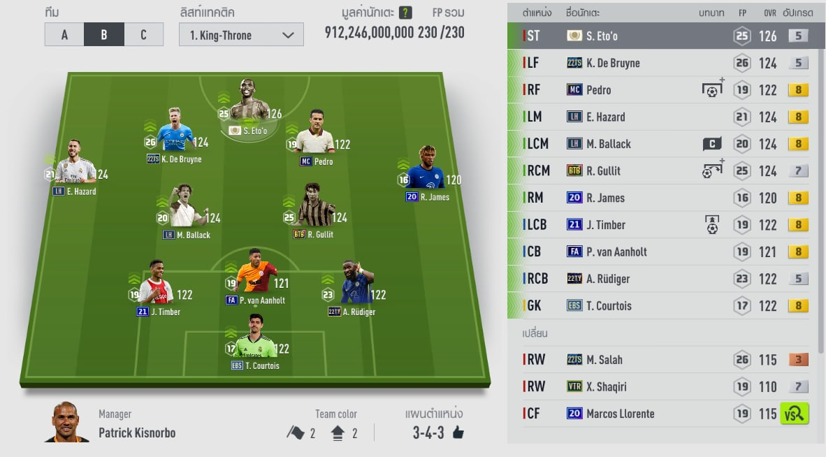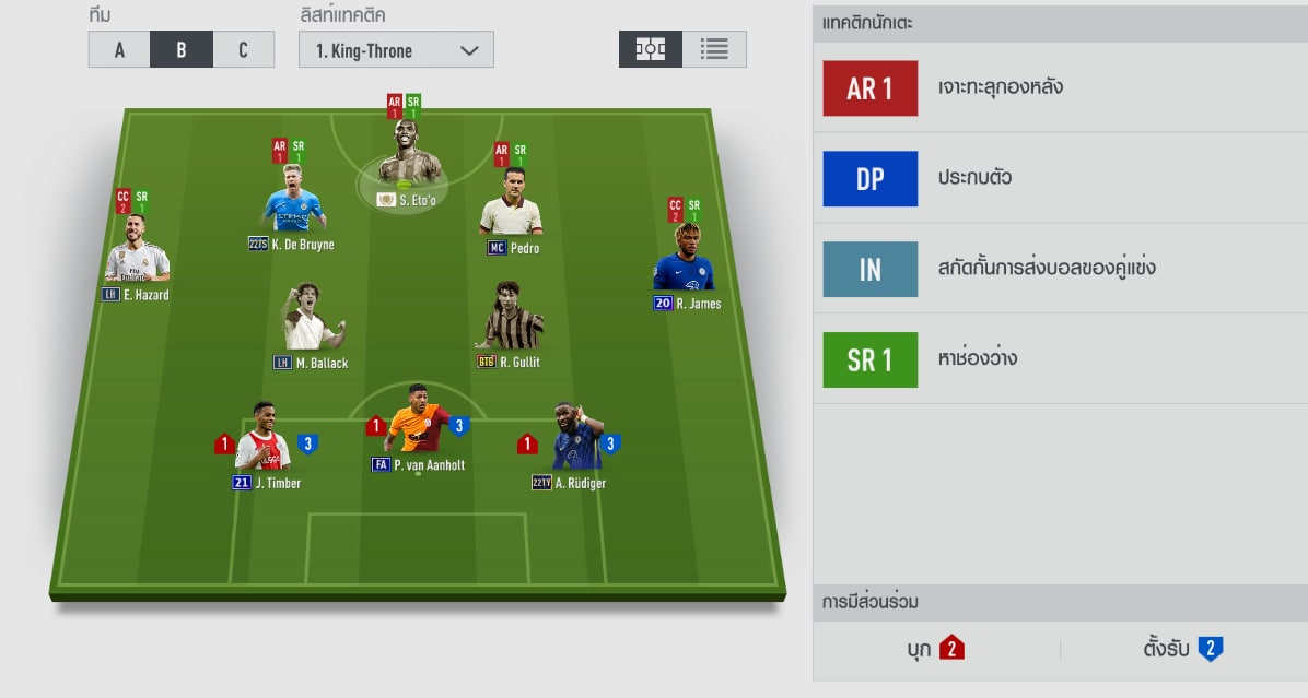 Trong game thì 343 cũng rất ít được các HLV sử dụng bởi tính rủi ro cao, tuy nhiên không phải vì thế mà nó không có đất dụng võ. Một sơ đồ dưới đây của Chelsea đến từ HLV của Thái Lan có thể là tư liệu tham khảo cho các bạn, nhất là với những ai ưa thích lối chơi tấn công tổng lực.