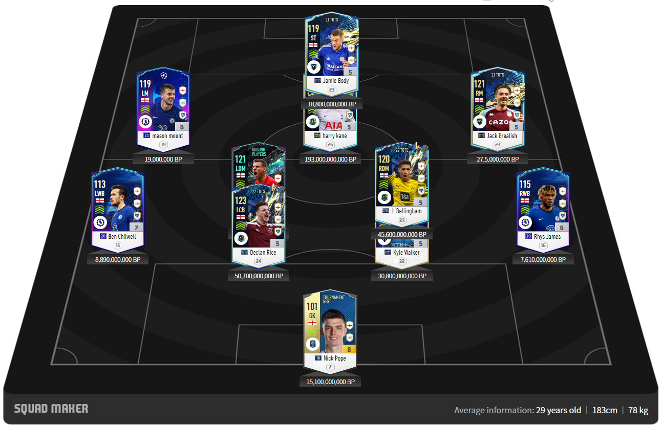 Sở hữu trong mình những ngôi sao của giải đấu hàng đầu thế giới Premie League. Đội tuyển Anh được đánh giá cao trong những năm trở lại đây khi họ có được á quân tại giải đấu Euro 2020. Tuy nhiên thực tế trong game thì tuyển Anh tương đối khó nhằn, do họ thiếu đi một vài cầu thủ mang tính quốc dân phù hợp với meta.