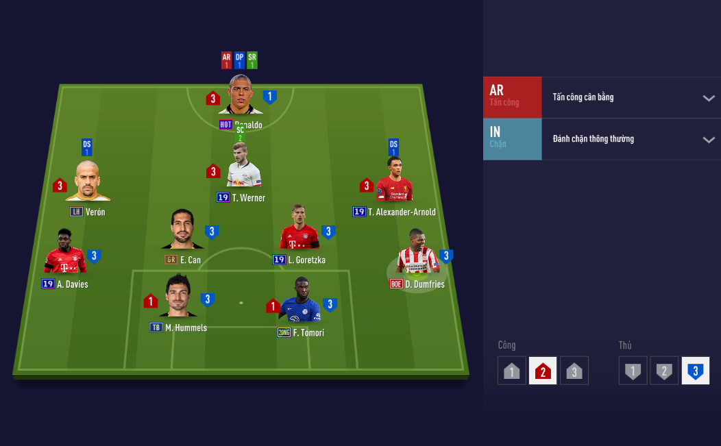 Với sơ đồ 42211 tuyển ANh sẽ có được các tuyến tương đối cân bằng trong hệ thống phòng ngự cũng như tấn công. Cặp đôi trên hàng công là Kane và Vardy, trong đó Kane được kéo xuống chơi thấp hơn Vardy, do khả năng chuyền bóng và kiến tạo tốt của ngôi sao người Anh hiện tại trong game là rất tốt. Vardy 21TS là một trong những cái tên khá bén và phù hợp với meta, ít nhất là khả năng dứt điểm 2 chân của Vardy đều rất ổn.