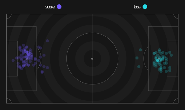 ✔ Cự ly ghi bàn trung bình : 15,4m