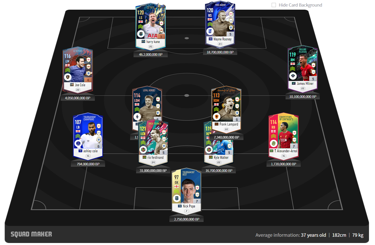 Team đội tuyển Anh là một team rất mạnh trong game nhưng lại ít được người chơi chú ý, họ luôn có sự bổ sung liên tục từ các mùa giải mới, khi mà giải đấu Premier League luôn giữ vững ngôi vị là giải đấu hấp dẫn nhất hành tinh. Các cầu thủ của Anh thì luôn có được những chỗ đứng nhất định tại giaiar đấu này.
