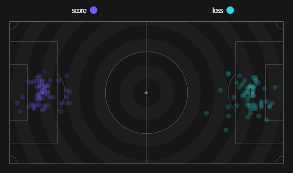 ✔ Cự ly ghi bàn trung bình : 15,2m