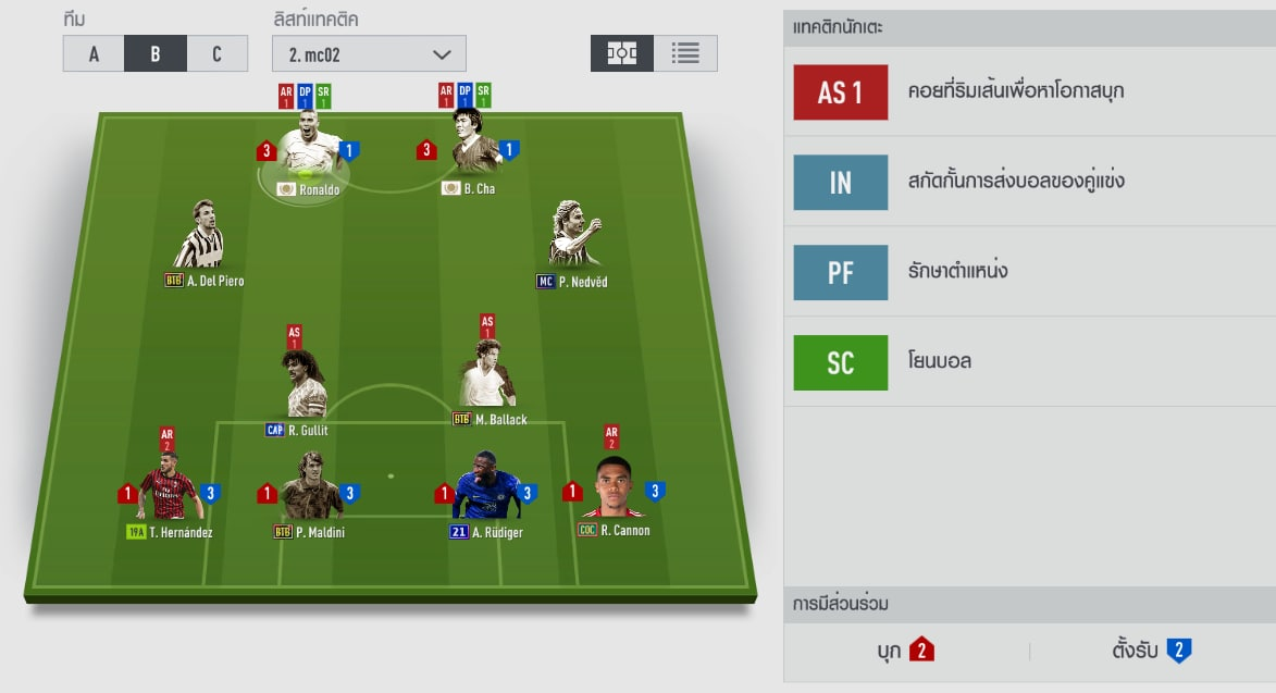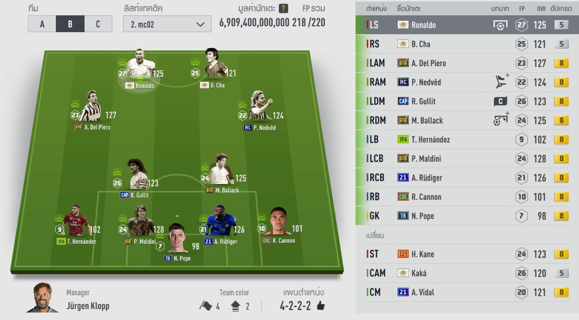 Cặp đôi tiền vệ phòng ngự được ưa chuộng vẫn là Gullit + Ballack quen thuôc. Trong khi đó Rudiger kết hợp với Maldini ở hàng phòng ngự. Có thể thấy là các vận động viên họ không quan tâm đến team color, mà chỉ làm sao để có được đội hình kết hợp mạnh nhất mà thôi. Điều này cũng phù hợp với việc phải thường xuyên đá giải khi chọn lựa cầu thủ không thể cùng một CLB hay đội tuyển được
