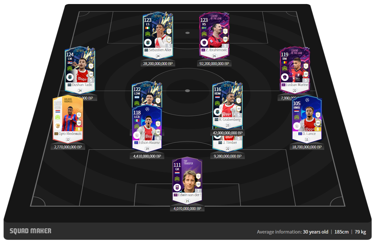 Sử dụng cặp tiền đạo Ibrahimovic và Haller đều là hai cái tên có tốc độ không phải là nhanh, nhưng chiều cao và thể hình là cực khủng, 4222 Ajax với cách xây dựng này dựa rất nhiều vào hai bên cánh do hai cái tên là Tadic và Razvan Marin, cả hai đều có khả năng tạt bóng cực tốt.