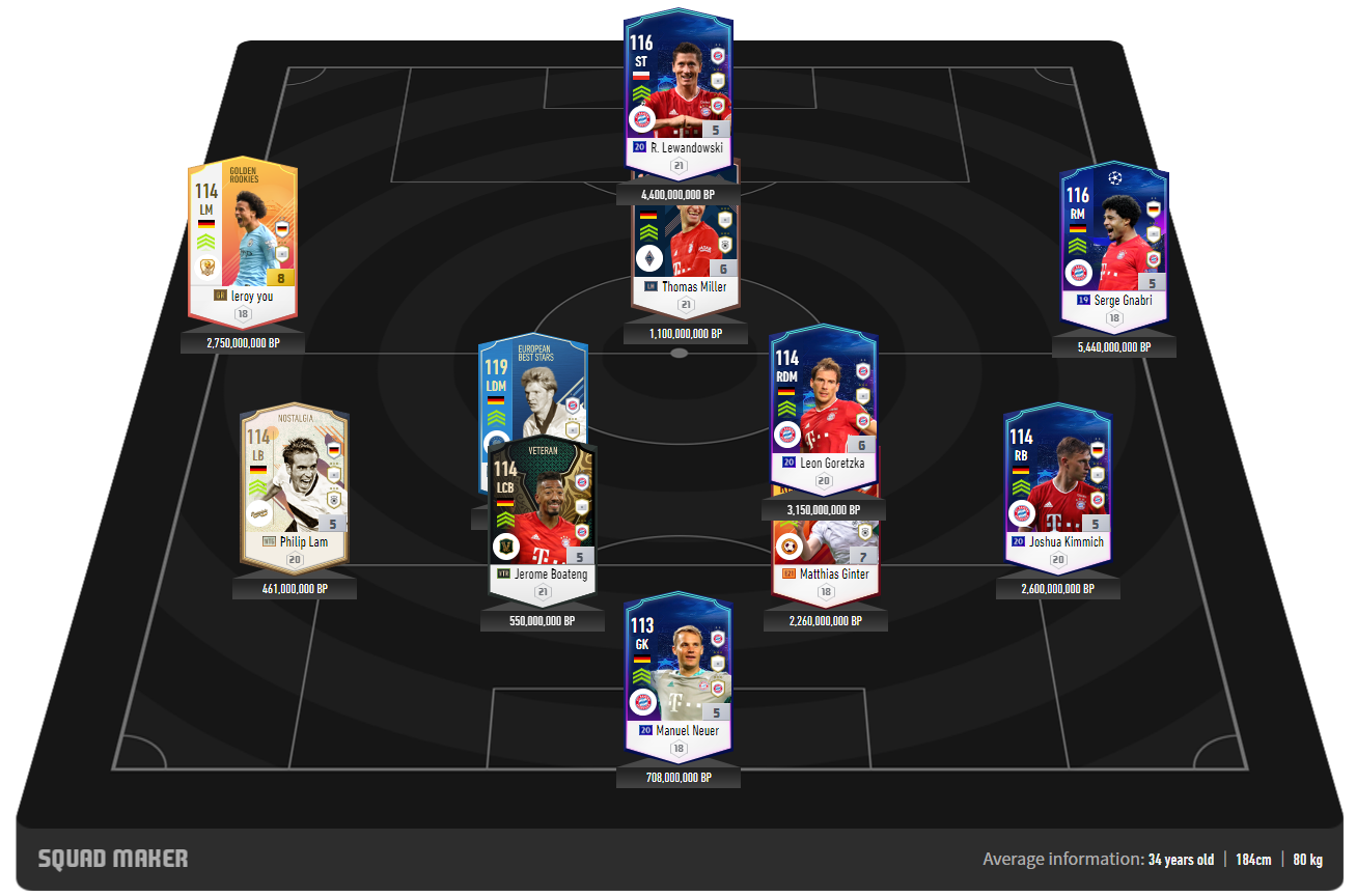 Không Ballack, cặp đôi được HLV này lựa chọn ở vị trí tiền vệ phòng ngự là Effengberg và Goretzka. Hiện tại thì Goretzka đang là CDM hot nhất của meta hiện tại theo đánh giá của cộng đồng bên Hàn Quốc.