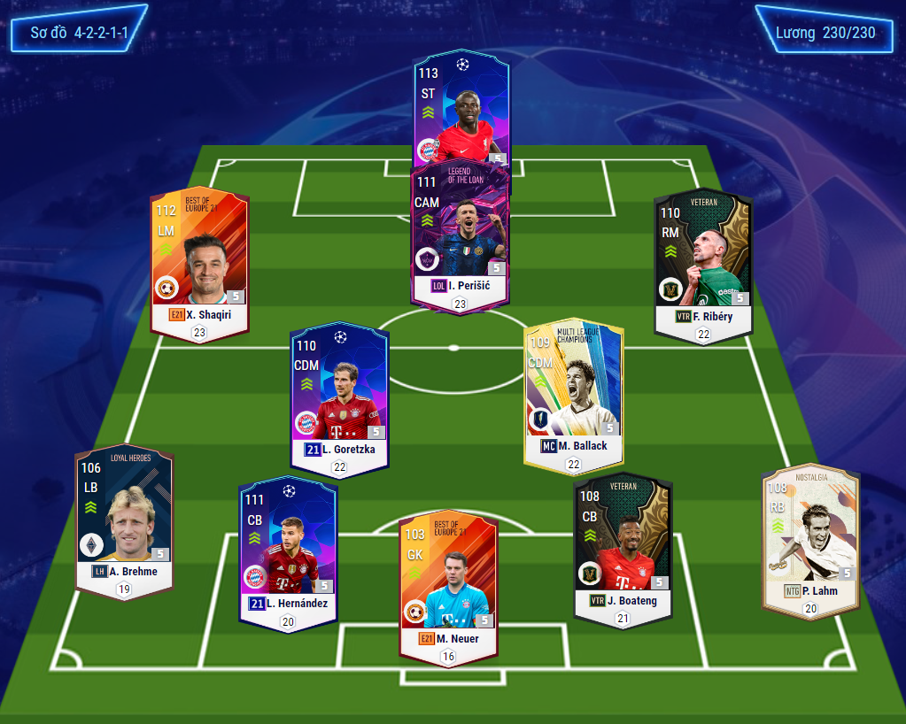 Dưới đây là một đội hình mà có lẽ bạn nên tham khảo nếu như muốn xây dựng team 2 chân 5/5 của Bayern