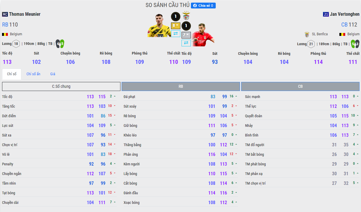 Tuy điểm cắt bóng hơi thấp, nhưng bù lại tốc độ và phản ứng của Meunier MC +8 lại rất cao, và thể hình của cầu thủ này cũng rất phù hợp để đá trung vệ - 1m90