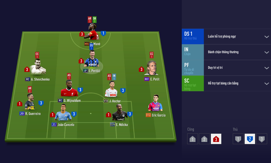 Đội hình mà HLV này sử dụng vẫn là 42211 thông dụng nhất của gameplay 8.0 với hai cầu thủ trung vệ là Vertonghen và Meunier. Tuy Meunier MC hiếm khi được người dùng tại Việt Nam sử dụng, đằng này lại được HLV người Hàn xếp đá trung vệ, có thể đây là vị trí phát huy hết khả năng của trung vệ này chăng